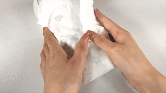 皮鞋脏了,可以用这个白布纸来擦。因为是无纺布可以不伤害到皮鞋的皮质,而且它的清洁效果非常好喔,很多污渍的地方稍微沾点水,一擦就能掉。