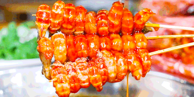 羊肉串、大油边、熟筋、排骨串、生蚝......