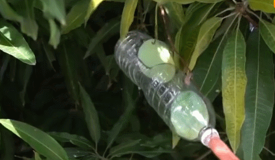 于是,广大网友发挥了无穷的智慧,用塑料瓶DIY“摘芒果神器”,为了吃到芒果也是拼了。